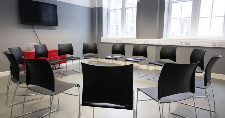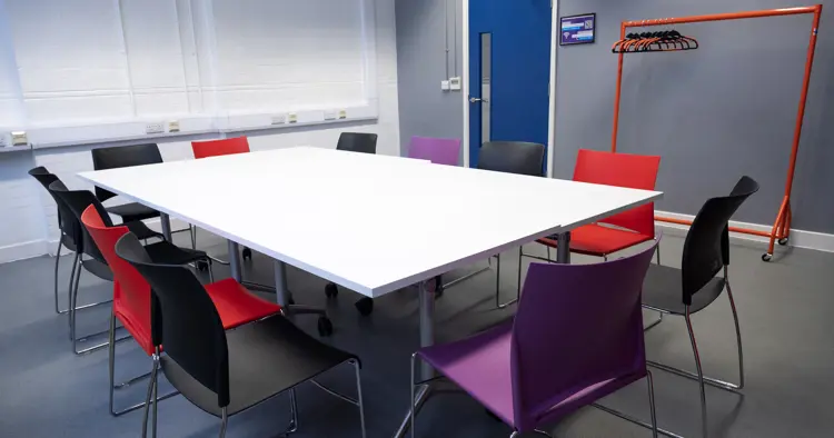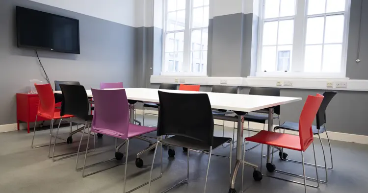 First floor room ideal for training, workshops and meetings. The room has good accoustics, natural light and air conditioning.