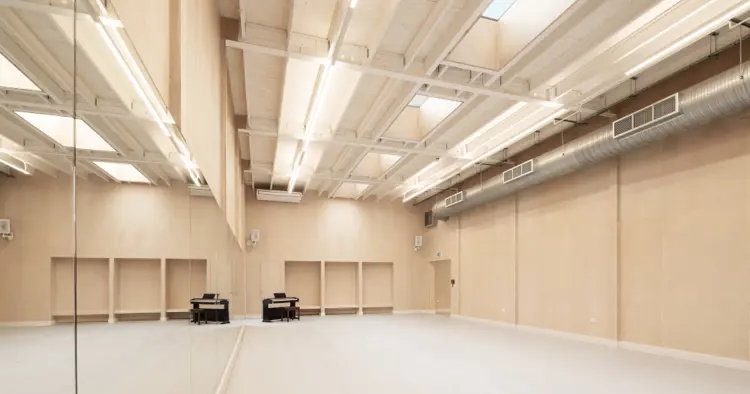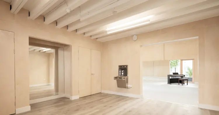 The studio is bright and spacious with semi-sprung floor. There is a dance barre, mirrored walls and great sound system. It can accommodate up to 40 people. With two doors, smooth entry and exit between classes is easily managed.