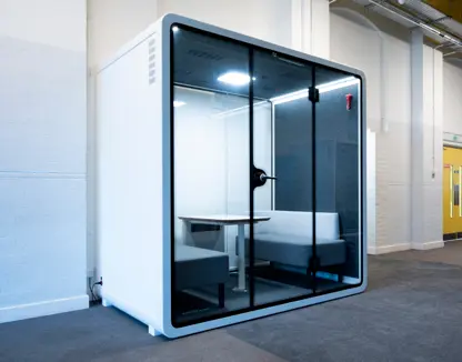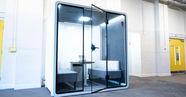 We have two soundproof meeting booths that are perfect for office working, conference calls, private consultations or a break out space.